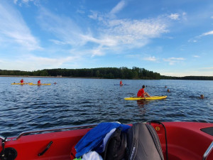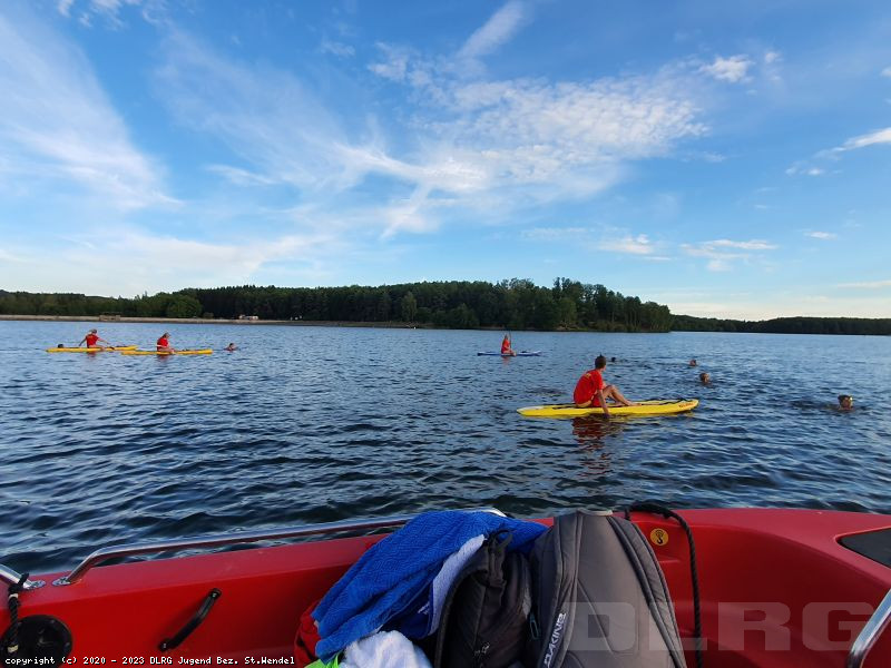Auf dem Wachdienst wurde es nie langweilig, da es neben den zahlreichen Übungen auch noch weitere kleinere und größere Einsätze gab. Samstags bekam Louisa noch eine Auszeichnung für die Rettung aus Wassergefahr für die Rettungs einis Kindes während der letzten Jugendwache. Außerdem absolvierten Mittwochs alle Teilnehmer den Nachweis der Einsatzfähigkeit und Donnerstags wurde gemeinsam durch den See geschwommen. An 3 Tagen der Wache kam noch kleinere Gruppen von Kindern aus der Ortsgruppe St. Wendel an den See, um einige Übungen zu machen. Für die meisten Kinder war es das erste mal DLRG seit Beginn der Krise und alle hatten daran viel Spaß.